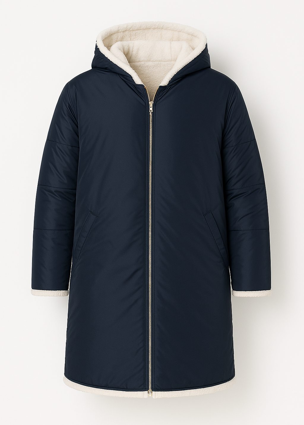 Este abrigo reversible ofrece una protección superior contra el frío, mientras que su diseño versátil permite llevarlo tanto en looks casuales como en ocasiones más formales. Con un lado en borreguito suave y otro en tejido técnico, se adapta a cualquier clima y situación, garantizando confort y elegancia durante todo el día.