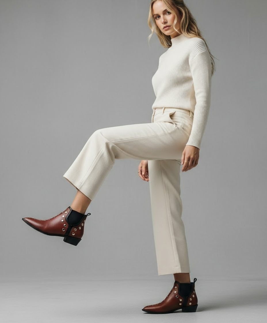 Los Botines Texas Taupe son el equilibrio perfecto entre estilo boho y sofisticación urbana. Con su diseño tipo western y detalles de tachuelas metálicos circulares, aportan un toque moderno y atrevido a cualquier look los convierte en un básico atemporal que combina fácilmente con vestidos, jeans o prendas de punto.