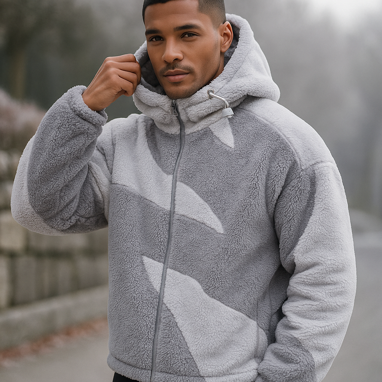 Inspirada en la calma del invierno urbano, esta chaqueta fusiona abrigo y sobriedad en un diseño contemporáneo. Su textura densa envuelve el cuerpo con una sensación de calidez inmediata, mientras la capucha amplia aporta equilibrio y carácter.