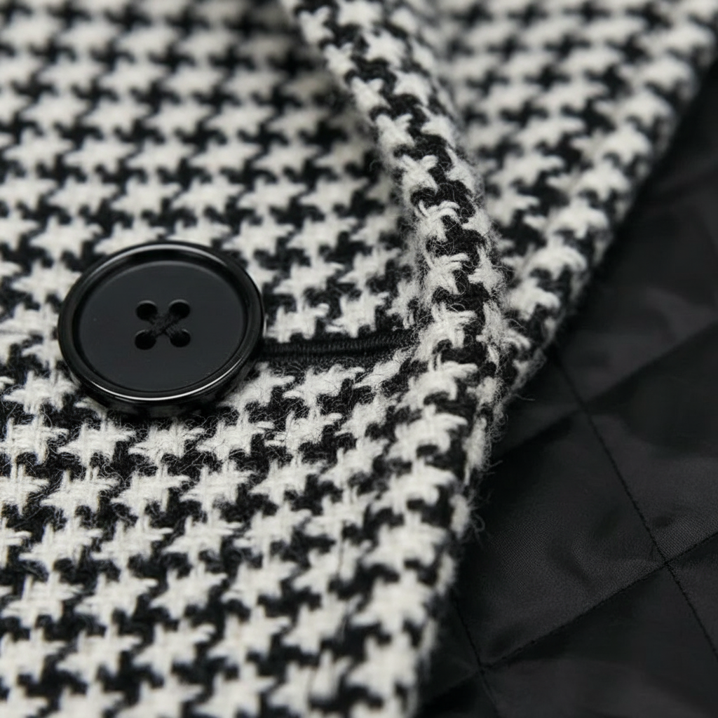 Detalles premium: botones decorativos, tonos clásicos Negro / Blanco.